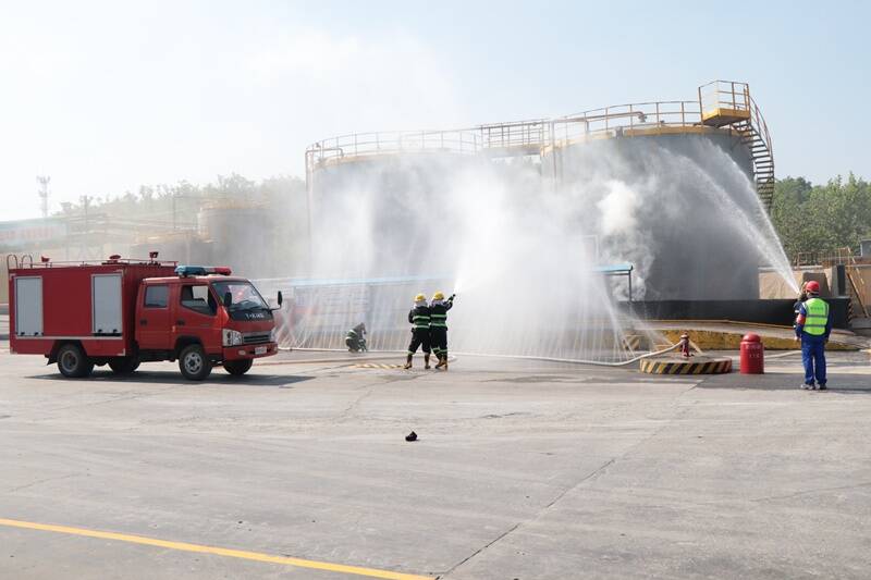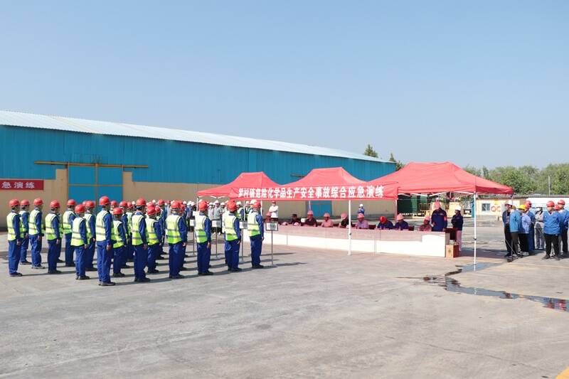 据了解,此次演练是硫酸罐区泄露应急演练,属于危险化学品生产安全事故综合应急演练。