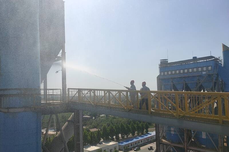 下午15点05分演练正式开始,演练模拟3#主收尘器停机阶段突然自燃着火,对厂区安全构成威胁,巡检员发现火情,立即上报,现场总指挥迅速下达3#各作业地点、场所、岗位人员撤退、中控室启动紧急停机指令。同时,向该公司值班领导、清洁能源公司调度中心汇报。