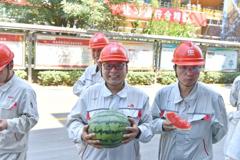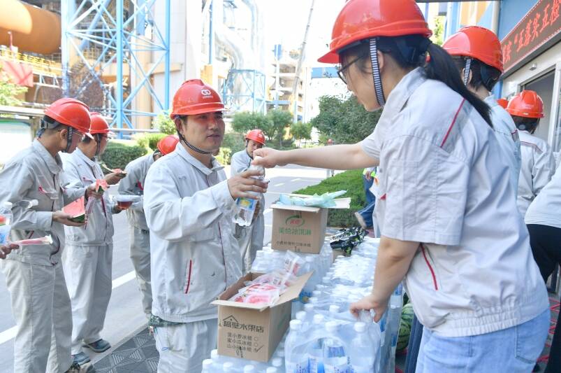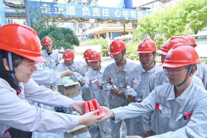 6月15日,东华科技公司组织女工协管员深入生产现场,为奋战在高温天气中的职工们送上西瓜、雪糕、绿豆汤、盐汽水等防暑降温食品,并叮嘱他们注意身体健康,劳逸结合,保障人员和生产安全,让“清凉”与“生产”同步,“健康”与“发展”同行。