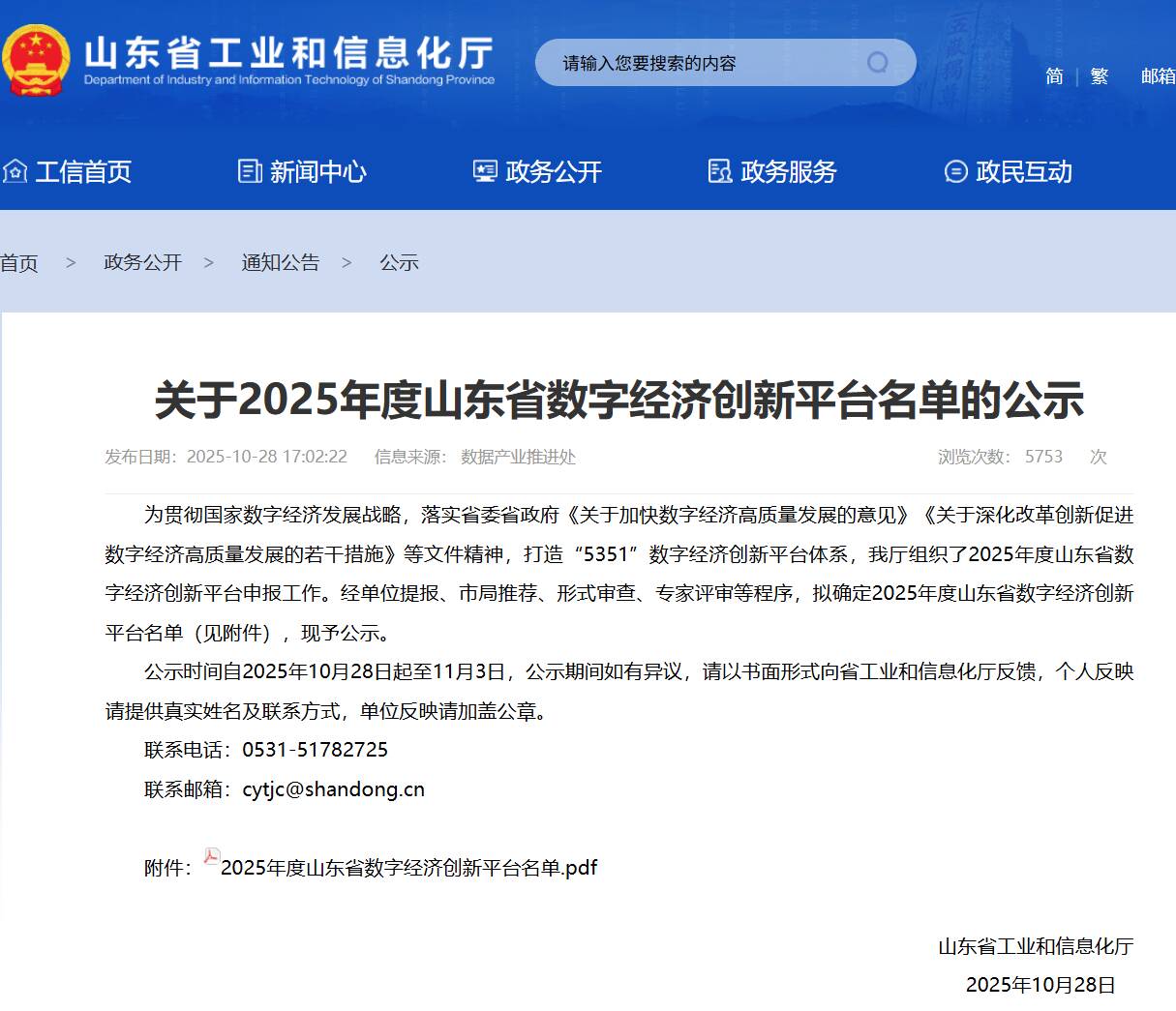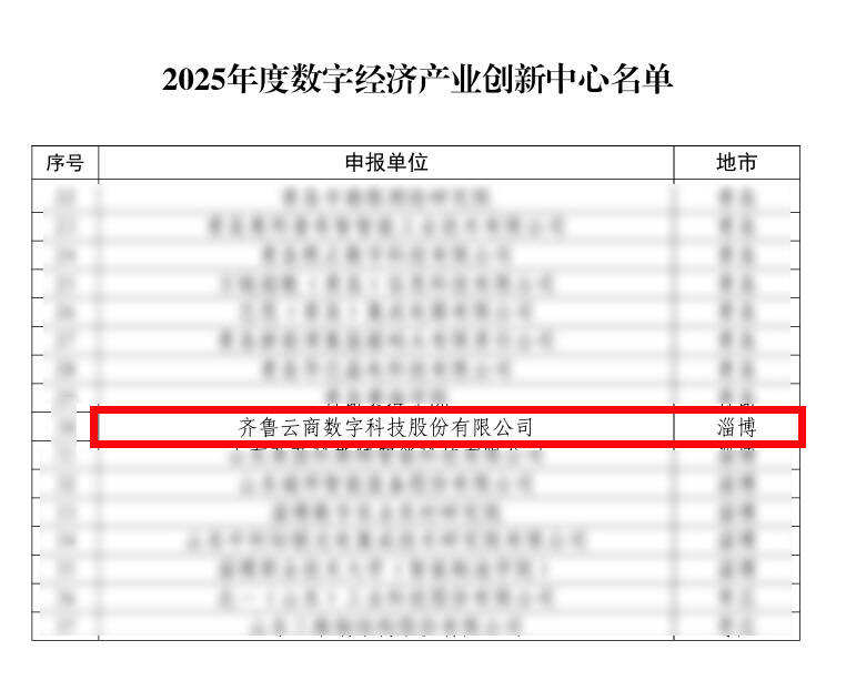近日,山东省工业和信息化厅正式公布2025年度山东省数字经济创新平台认定名单,齐鲁云商凭借在数字经济领域的技术沉淀与创新实践,成功获评省级数字经济产业创新中心,再添一张省级高端平台“金名片”。