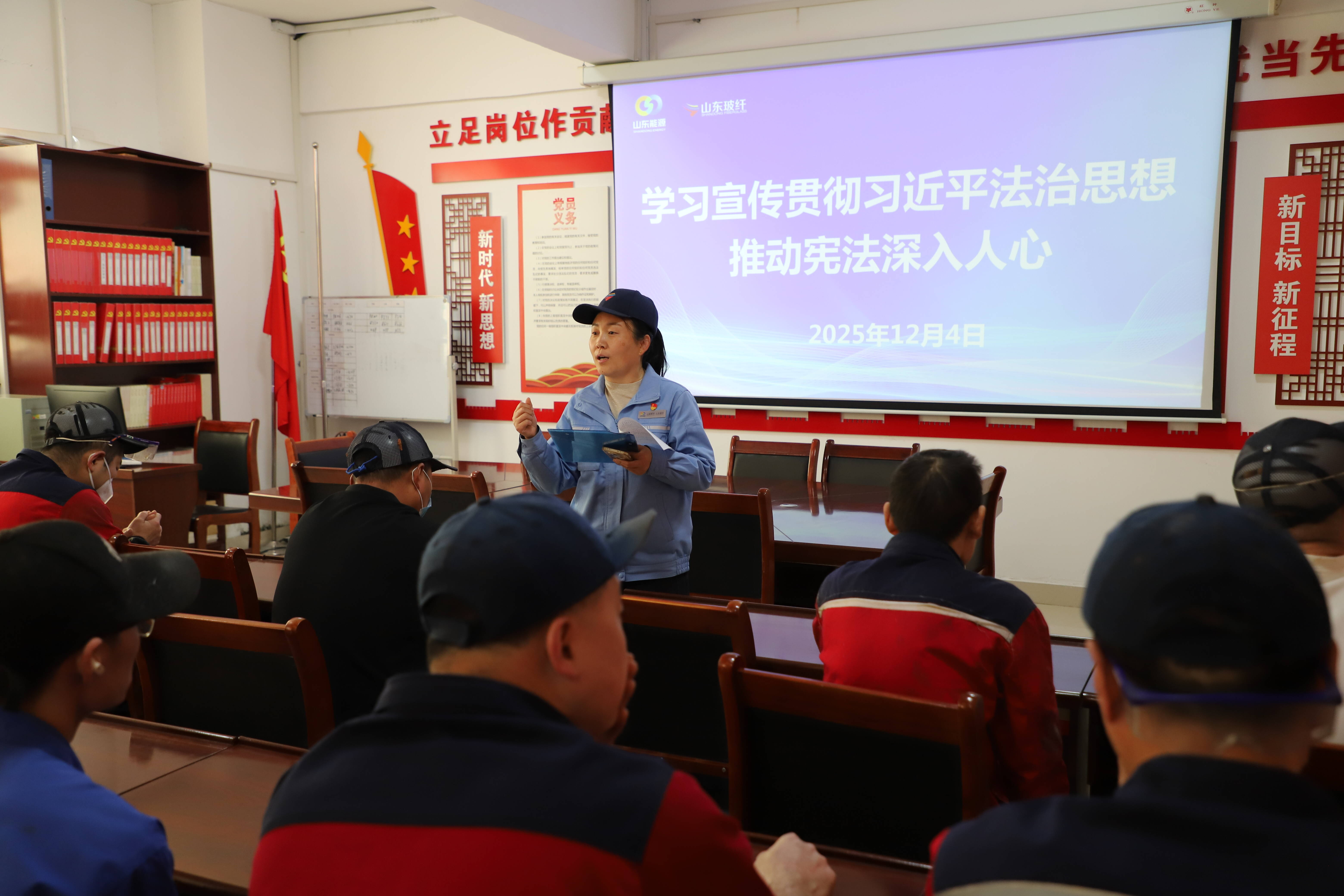 为让宪法宣传教育“看得见、听得懂、摸得着”,山东玻纤“线上+线下”相结合,着力提升职工法治知晓率。各班组充分利用班前班后会的“碎片化”时间,由班组长牵头开展“法治微课堂”,结合车间生产实际讲解宪法中关于劳动保护、安全生产的相关条款,让职工深刻认识“学法懂法既是义务更是保障”。