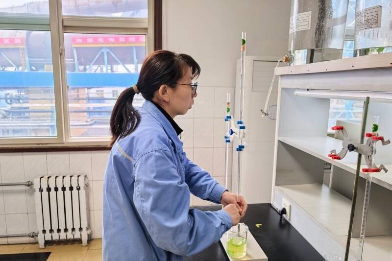 作为化学分析岗位的带头人,刘垚始终坚持一个原则——数据必须绝对准确。“因为我知道,化验数据差一点,产品质量可能就差很多。”在工作中,她既是严谨的分析者,也是不断探索的创新者。此前,她参与的《使用低价铁质原材料降低配料成本》项目获得山东能源新材料公司群众性创新成果奖。为了提升熟料强度,她通过反复实验探索出氟化钙含量的检测方法,为提升熟料强度提供了有力的数据。